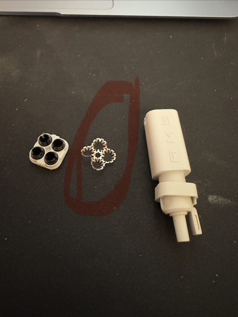Well, I clean the print head and… nothing. So I disassemble the filament hub (the piece above the print head, where the 4 PTF tubes from the AMS arrive, containing the filament) and… there’s the culprit!