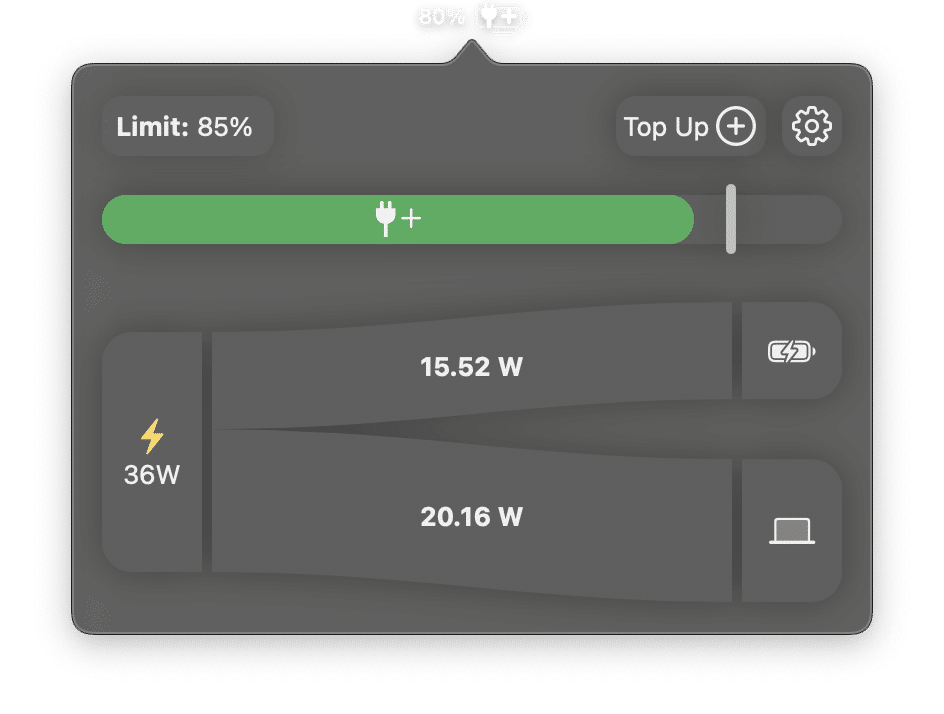 The second one is AlDente, which allows you to monitor your Mac’s battery health and set a maximum charging value to help the battery wear out less and last longer. It actually does a ton of other functions and lets you keep track of a lot of battery values, but this is my main use for it.